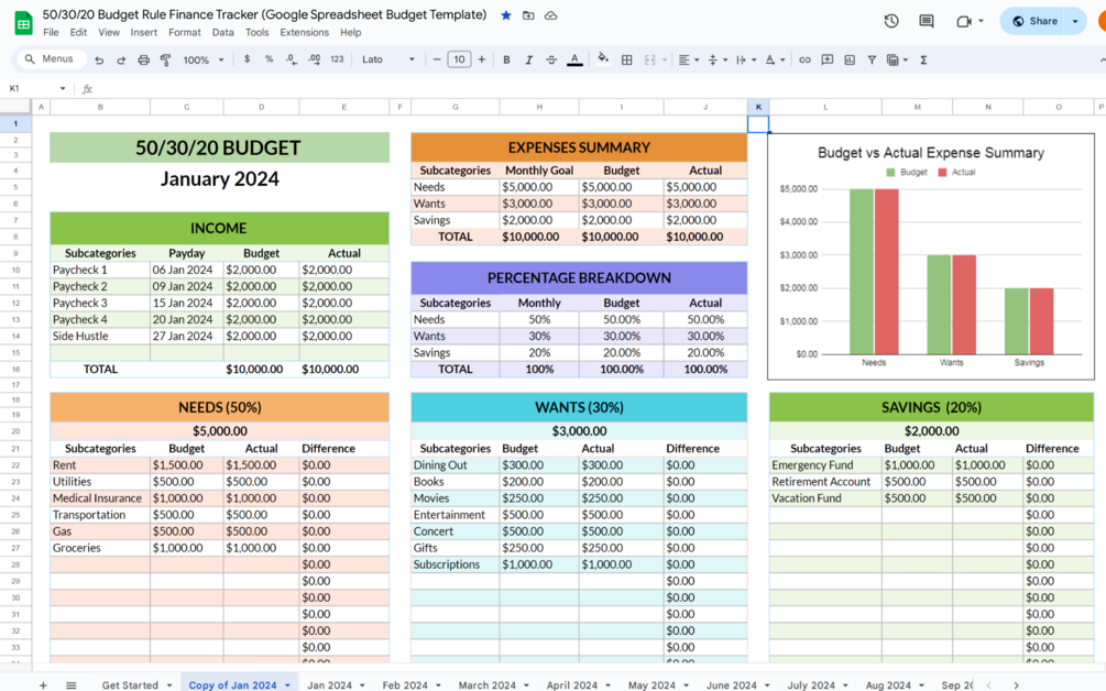 - What will happen after I purchase? Once you've completed your purchase, you will gain instant access to this 50/30/20 Budget Rule Finance Tracker (Google Spreadsheet Budget Template). From there, you can duplicate the template into your own google account.